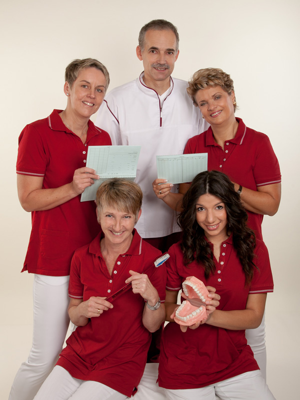 Mein Name ist Gabriele Schwab, ich bin seit mittlerweile fast 20 Jahren in der Praxis de Jong, genau seit 1994. Ich bin verheiratet und habe einen Sohn, der Mathias heißt. 1980 habe ich erfolgreich meinen Helferinnenbrief abgeschlossen. In der Praxis de Jong bin ich tätig in der Stuhlassistenz, bin ausgebildet als Prophylaxehelferin und als solche hauptsächlich im Einsatz. Außerdem verrichte ich kleine dringende Laborarbeiten.